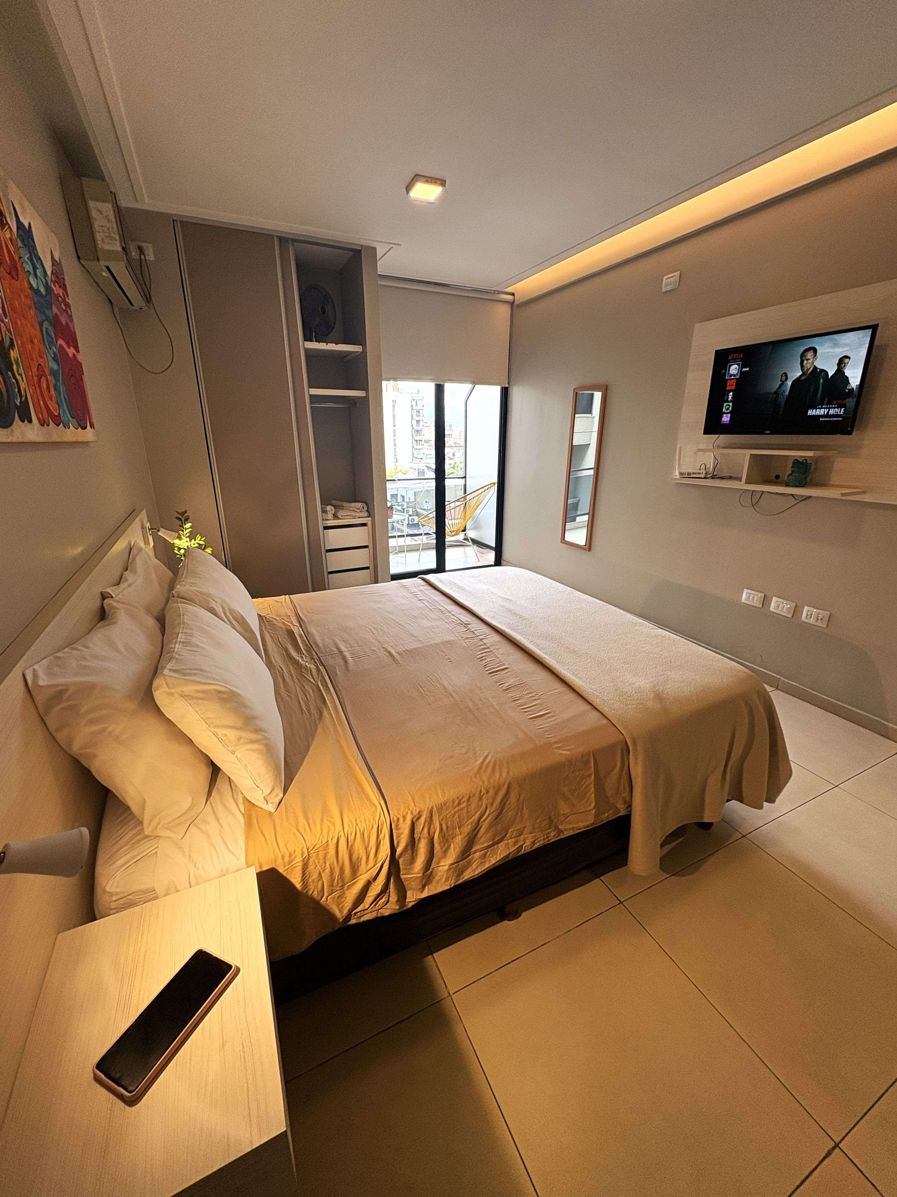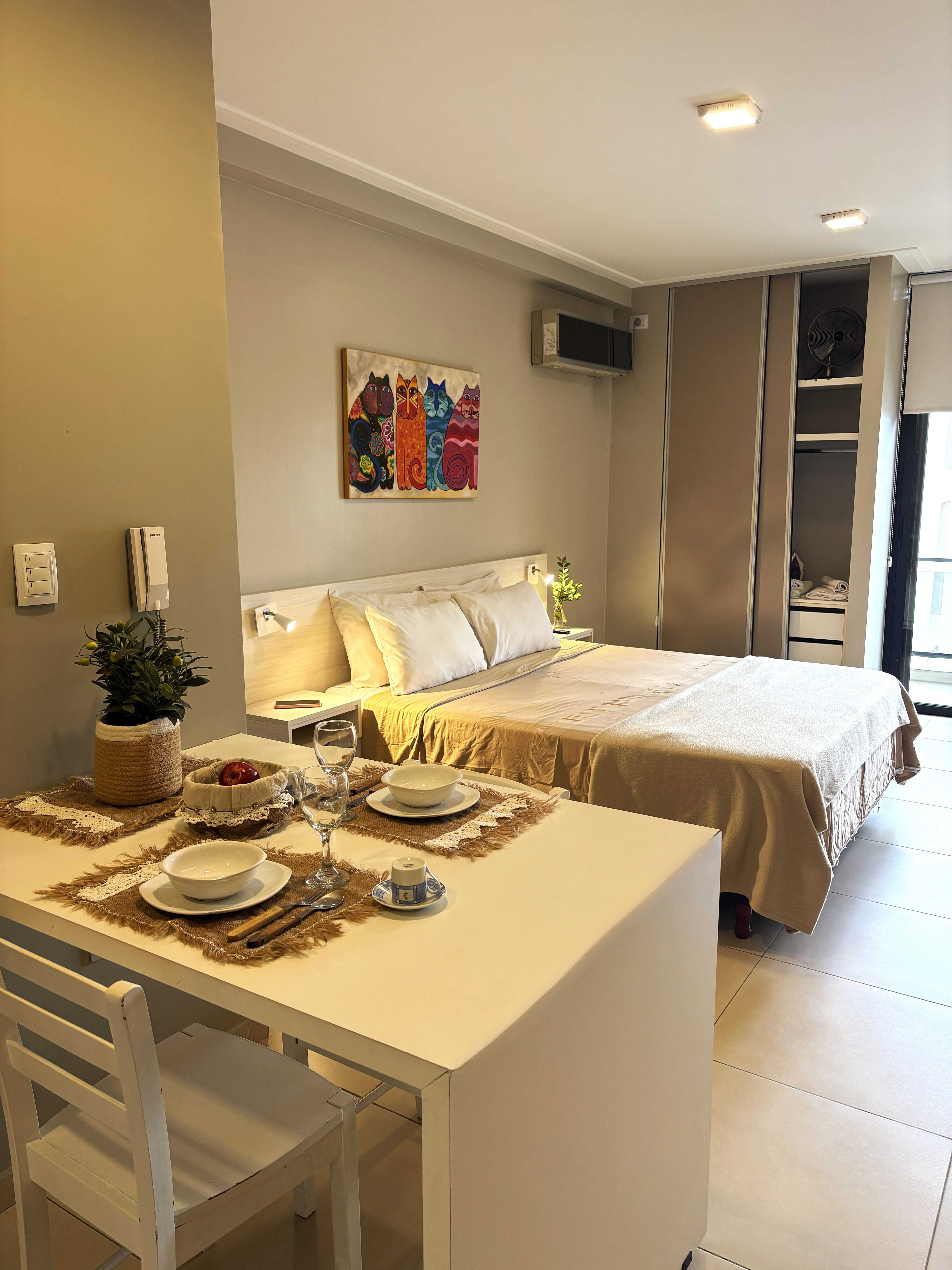 Moderno y confortable monoambiente en la zona más elegante y segura del centro. A pasos del microcentro, rodeado de bares, tiendas y todo tipo de comercios. Con excelente conectividad. Studio tranquilo y silencioso ya que da al corazón de manzana, muy luminoso y ventilado. Ideal para estadías por trabajo, salud o descanso.